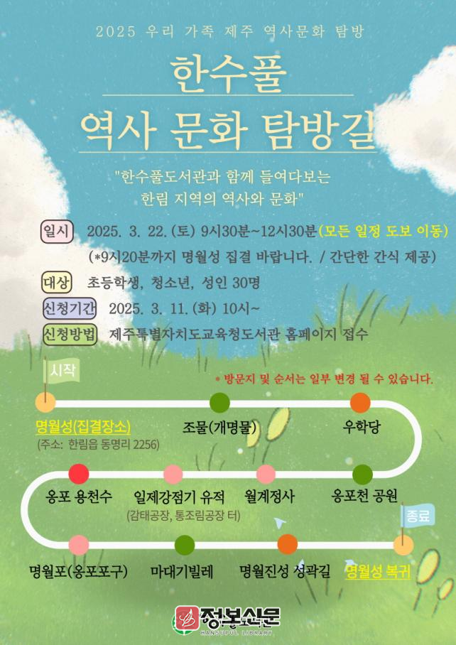 이와 관련하여 자세한 내용은 한수풀도서관(064-793-6102)으로 문의하면 된다.