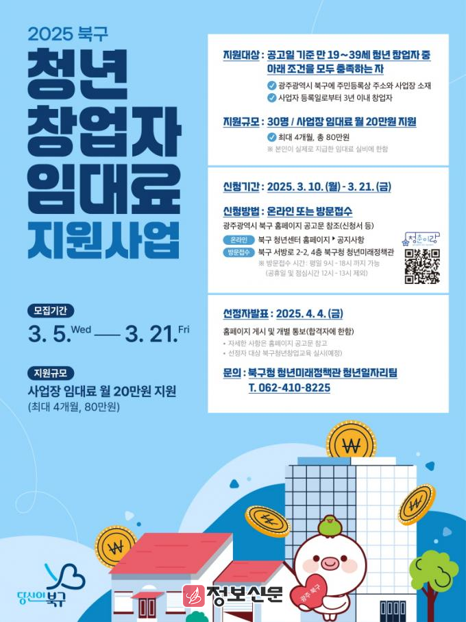 ![]() 광주시 북구, 청년 창업자 임대료 지원사업 추진 |