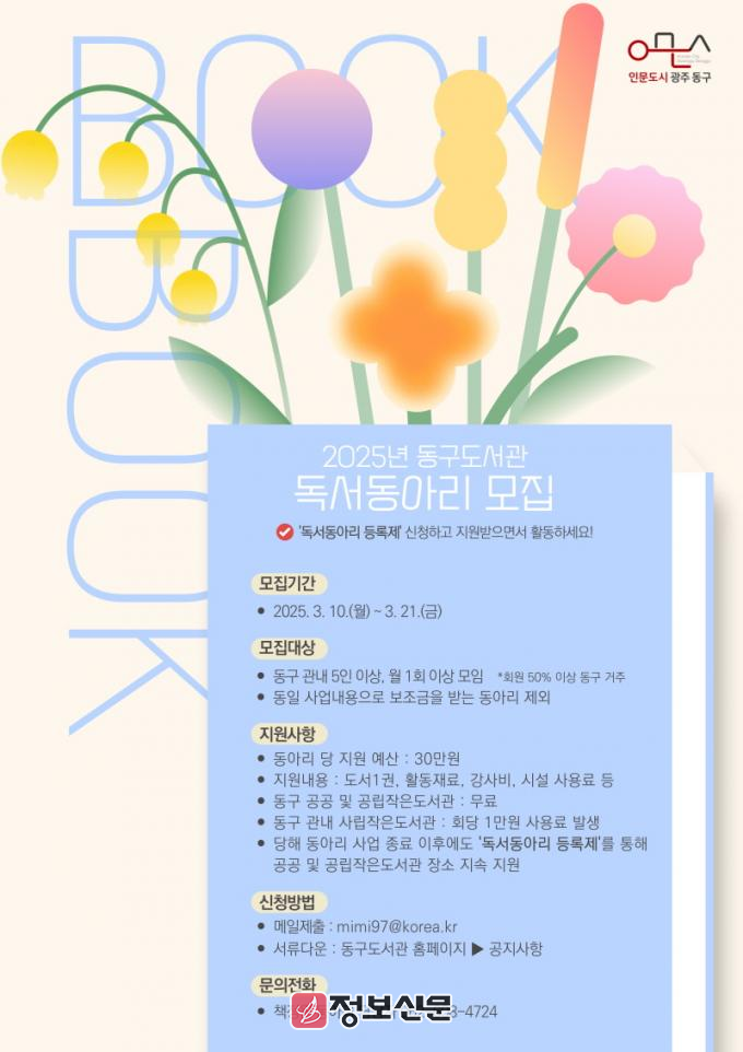 ![]() 광주시 동구, 도서관 독서동아리에 참여하세요 |