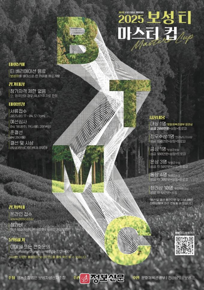 올해로 3회째를 맞는 보성티마스터컵은 보성차를 기반으로 한 창의적인 음료 개발 경연대회로, 차 산업의 새로운 가능성을 모색하고 보성 차의 경쟁력을 전국적으로 알리기 위해 기획됐다.
