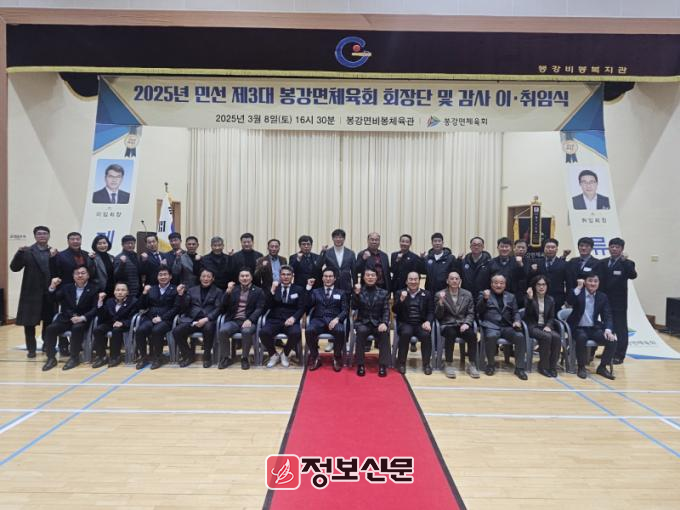 2025년 봉강면체육회 신임 회장단은 △ 회장 류성진 △ 수석부회장 이상종 △ 부회장 이흔균, 허남식, 이돈현, 박문옥, 허남옥 △ 감사 탁상신, 허용호로 구성됐다.