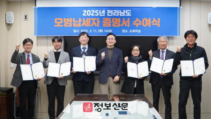 올해 모범납세자로 선정된 법인은 한국쓰리엠(주), 나주관광개발(주)이며 개인으로는 이동언, 이옥, 이진호, 조용윤, 강윤아, 김종례, 구명서, 이명진 씨가 이름을 올렸다.