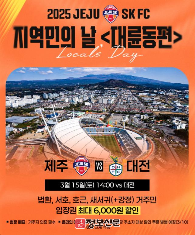 ![]() 제주SK FC, 3월 15일 대전전서 지역민의 날 <대륜동편>열어 |
