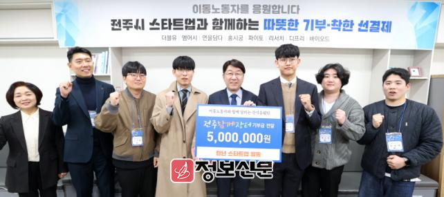 특히 이날 행사는 매출 감소로 어려움을 겪는 지역 소상인을 돕기 위한 ‘착한 소비자운동’과 이동노동자들에게 활력을 불어넣는 ‘함께장터 프로젝트’의 일환으로 기획된 것으로, 전주시 청년 스타트업이 지역 상권 활성화와 이동노동자를 응원하기 위해 기부한 성금으로 진행돼 의미를 더했다.