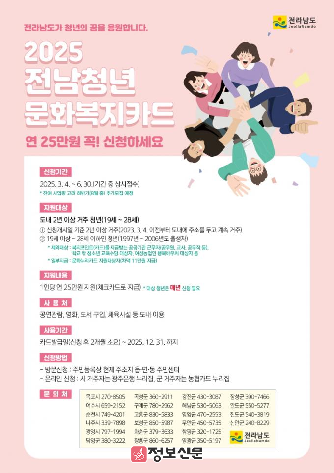 ![]() 전라남도, 전남청년 문화복지카드 신청자 상시모집 |