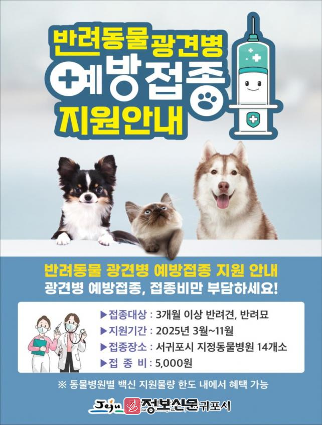 ![]() 서귀포시, 반려동물 광견병 예방접종 지원사업 추진 |