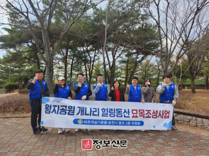 ![]() 바르게살기운동 순천시 왕조2동 협의회, 23년째 개나리 동산 가꾸기 활동 |