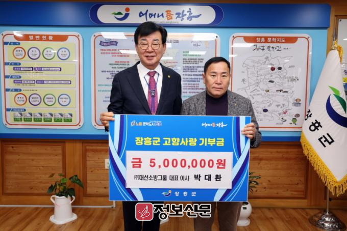![]() 박대환 대선소방그룹 대표, 장흥군에 고향사랑기부금 기탁 |