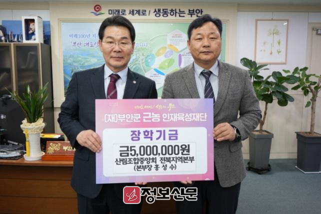 홍성수 본부장은 “학비 부담 등 어려움을 겪고 있는 지역 청년들에게 힘이 되었으면 좋겠다”며 “산림조합중앙회 전북지역본부가 앞으로도 부안군 청년들을 응원하겠다”라고 기부 취지를 밝혔다.