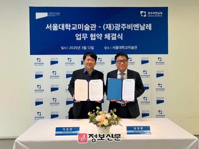 광주광역시(시장 강기정)는 광주비엔날레재단과 서울대학교미술관이 12일 서울대미술관에서 ‘광주비엔날레 문화예술 교류 네트워크 확장 및 활성화를 위한 협약’을 체결했다고 밝혔다.