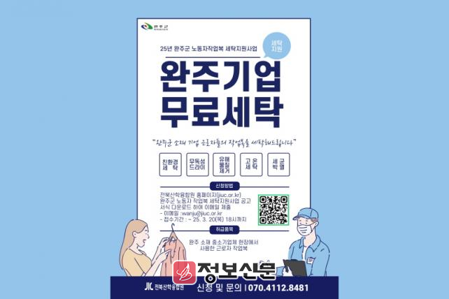 ![]() 완주군, 산단근로자 근로환경 개선위한 작업복 세탁지원사업 추진 |
