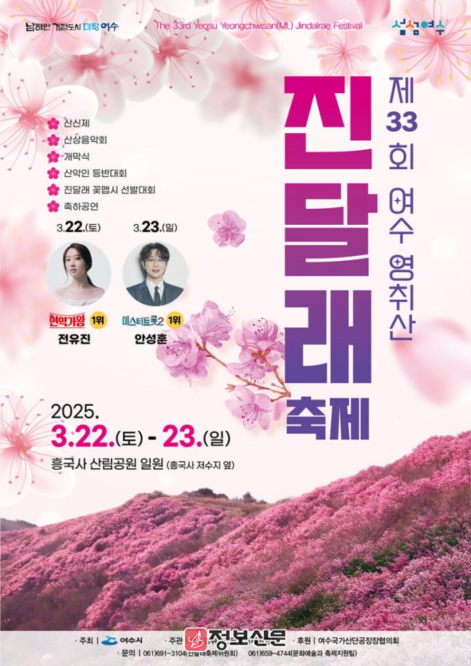 ![]() 여수시, 영취산진달래축제 3월 22일~23일 개최 |
