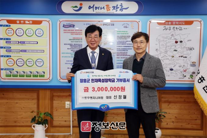 ![]() 신정철 토우엔지니어링 대표, 장흥군에 인재육성장학금 기탁 |