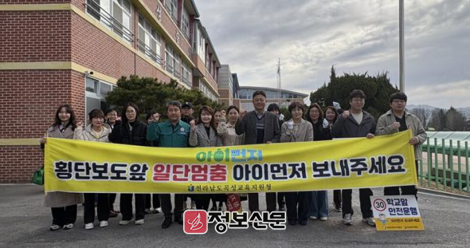곡성교육지원청, 곡성경찰서, 곡성군청, 곡성중앙초 녹색어머니 봉사회 등 70여명이 함께 참석하여 어린이 보호구역 내에서 우리 어린이가 지켜야 할 교통수칙을 안내하고, 교통안전 의식 확산을 위하여 스쿨존을 통행하는 운전자들에게 횡단보도 일단 멈춤, 어린이 보호구역 내 속도 준수, 불법 주정차 금지 등 스쿨존 내 무사고를 위한 홍보활동을 전개했다.