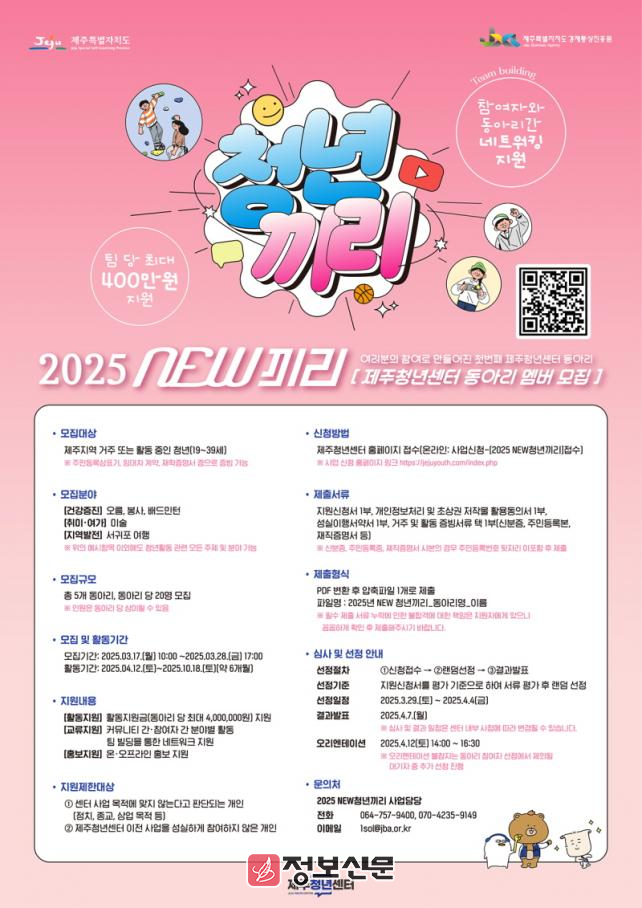 ![]() 제주청년센터, 2025 NEW 청년끼리 참여자 모집 |