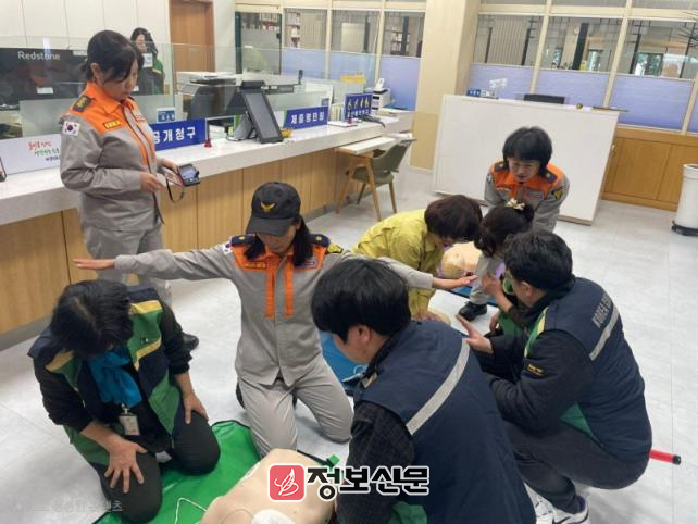 특히 이번 훈련은 교육청 직원들이 실제와 유사한 응급 상황을 재현해 심장충격기 사용 등 자체 대응과 신속히 119에 연락하여 민원인의 생명을 안전하게 확보하는 등 단순한 이론교육에서 벗어나 실제 상황 발생 시 대처할 수 있도록 진행됐다.