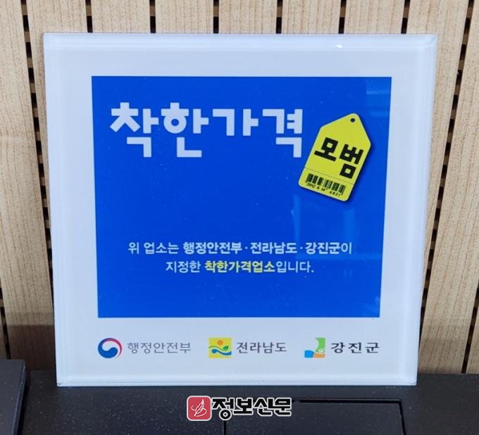 착한가격업소는 저렴한 가격과 위생이 청결해 소비자에게 만족을 주는 업소다. 물가안정을 위해 행정안전부와 지방자치단체가 지정·관리한다. 현재 강진군에는 외식업 13개소, 서비스업(이미용) 2개소로, 총 15개소의 착한가격업소가 운영되고 있다.