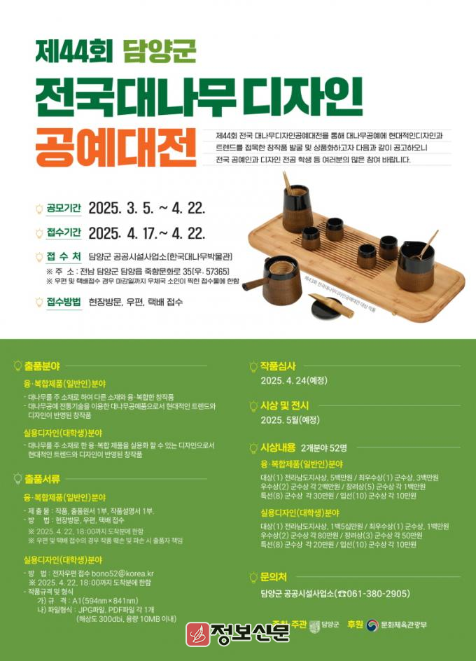 ![]() 담양군, 제44회 전국대나무디자인공예대전 개최 |