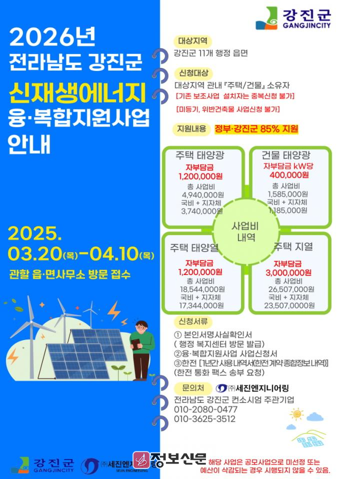 ![]() 강진군, 에너지 융복합지원사업 수요조사 실시 |