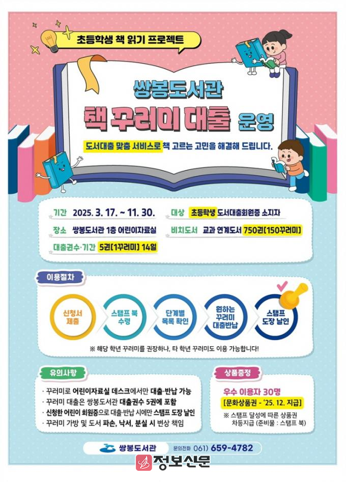 ![]() 여수시립쌍봉도서관, 초등학생을 위한 ‘책 꾸러미 대출’ 시작 |