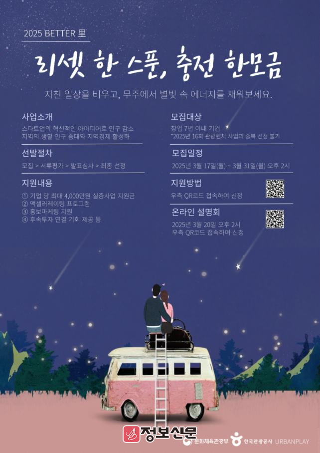 이는 무주가 ‘2025 BETTER里’ 사업 공모에 선정되면서 추진하게 된 것으로 ‘BETTER里’ 사업은 혁신적인 아이디어와 사업 모델을 제시하는 관광 스타트업을 통해 지역의 생활 인구를 늘리고 경제를 활성화하는 프로그램이다.