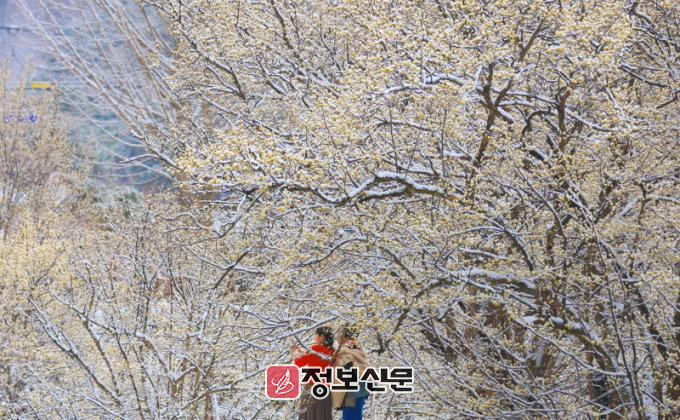 ![]() 구례 산수유꽃축제장에 눈이 내려 |