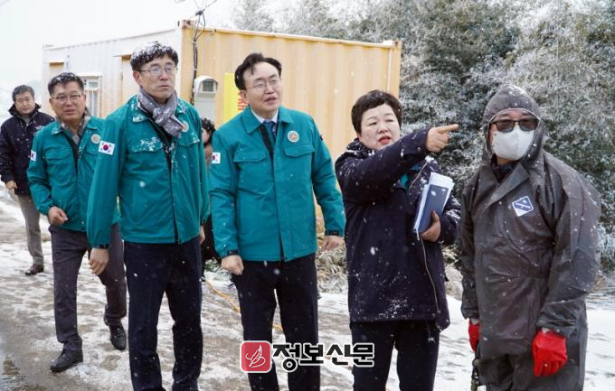 ![]() 윤병태 나주시장이 18일 반남면 구제역 방역 초소 현장을 점검하고 근무자들의 노고를 격려하며 철저한 방역을 당부했다. (사진제공-나주시) |