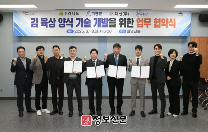 ![]() 고흥군, 전남도·대상(주)·하나수산과 김 육상양식 기술 개발 업무협약 체결 |