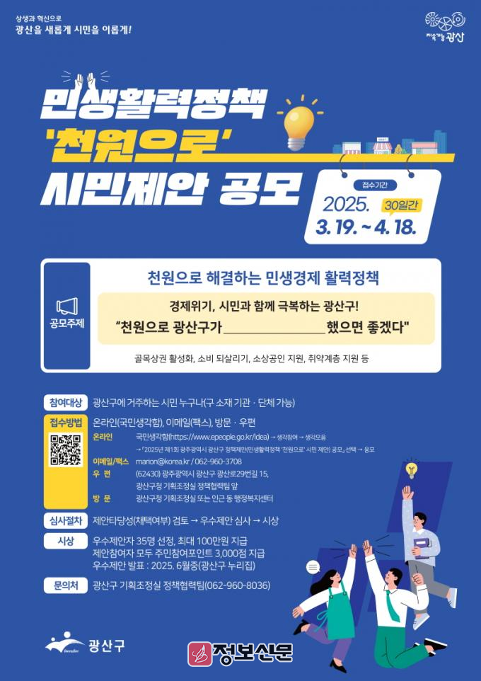 ![]() 광주시 광산구, 민생 활력 정책 ‘천원으로’ 시민 제안 공모전 개최 |