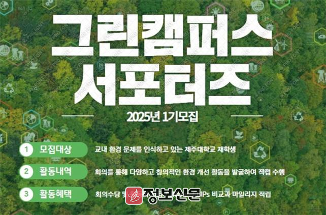 이에 3월 18일부터 27일까지 10일간 제주대학교 학생을 대상으로 `그린캠퍼스 서포터즈(1기)`를 공모한다.