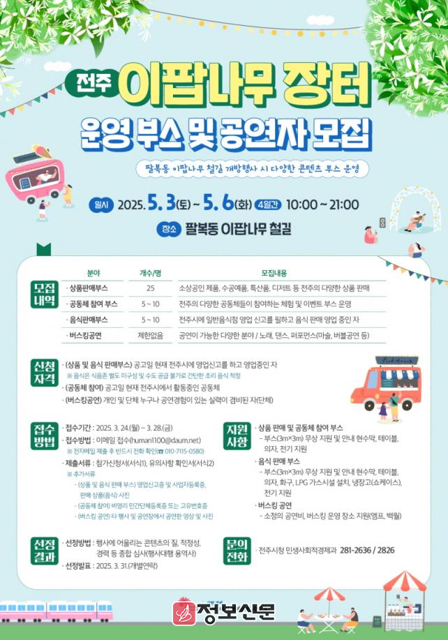 ![]() 전주시, 2025전주이팝나무 철길 행사부스 참여업체 모집 |