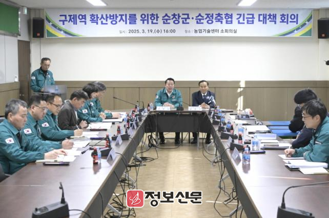 이날 회의는 농업기술센터 회의실에서 열린 가운데 최영일 군수를 비롯해 남상국 순정축협 조합장, 군 축산방역 부서장 및 담당자, 관계자들이 참석했다.