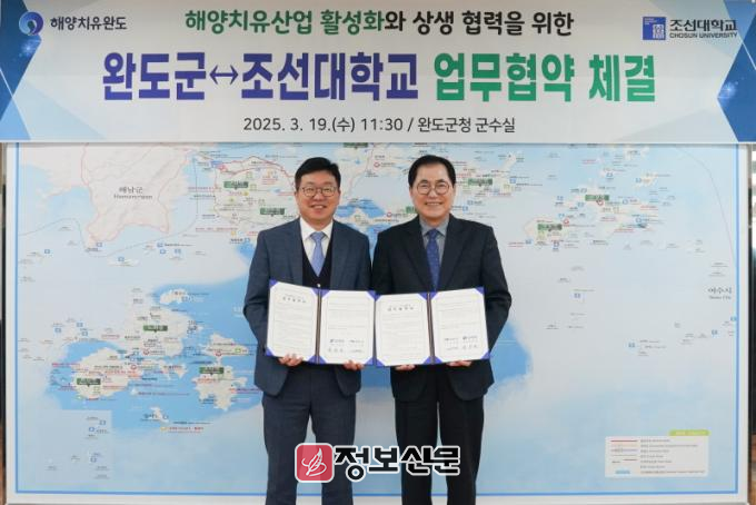 ![]() 조선대학교, 완도군과 웰에이징 해양치유산업 활성화를 위한 업무협약 체결 |