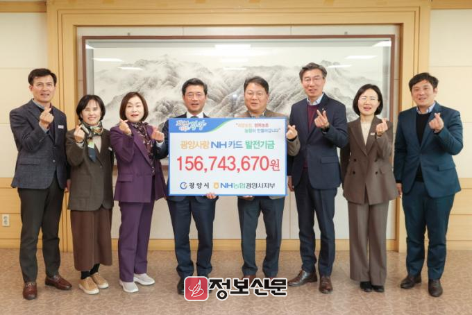 이날 전달식에서 정인화 광양시장은 “NH농협은행과 제휴를 통해 적립된 기금은 지역발전을 위해 필요한 곳에 사용할 계획이며, NH농협은행 광양시지부도 시민과 지역발전을 위해 최선을 다해주길 바란다.”라고 말했다.