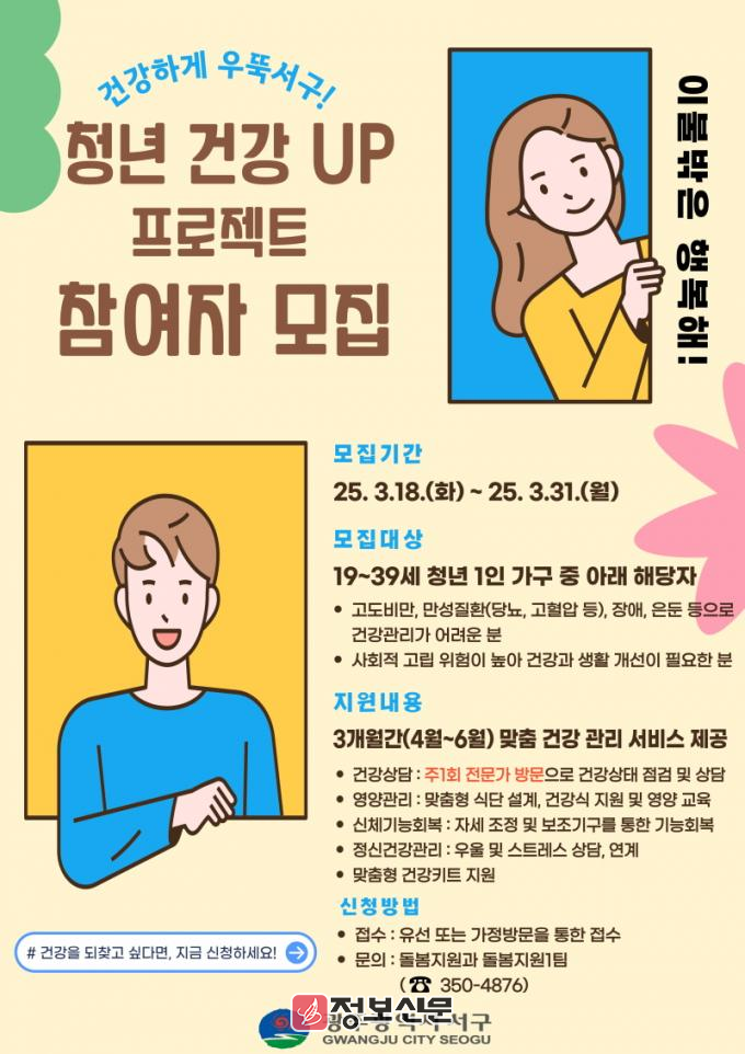 ![]() 광주시 서구, 청년 건강UP 프로젝트 추진 |