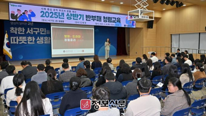 아울러 서구는 이번 청렴 교육을 시작으로 캠페인과 청렴 해피콜, 구청장과 함께하는 청렴 토크쇼 등 다양한 청렴 정책을 추진해 청렴한 조직문화를 조성해 나갈 계획이다.