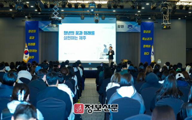 제주한라대학교 학생회의 초청으로 마련된 이번 특강은 지난 12일 제주관광대에서 진행한 특별강연에 이은 두 번째 행사로, 500여 명의 재학생과 교직원들이 참석한 가운데 ‘청년의 꿈과 미래를 실현하는 제주’를 주제로 진행됐다.