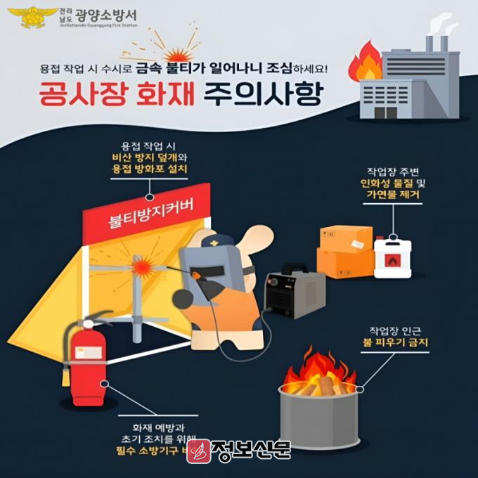 ![]() 광양소방서, 봄철 공사장 용접·용단 작업시 화재주의 당부 |