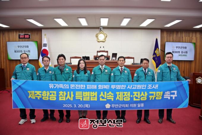 무안군의회는 결의안을 통해 △사고조사위원회의 독립성과 객관성을 확보하고 모든 조사 결과를 투명하게 공개할 것 △피해자 및 유가족에 대한 일상생활 회복 지원 등 일련의 후속 조치를 담은 특별법을 조속히 제정할 것 △피해자 및 유가족에 대한 2차 가해를 방지하기 위한 강력한 법적 조치 방안을 마련할 것을 정부와 국회에 강력히 촉구했다.