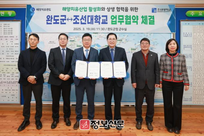 ![]() 완도군, 조선대학교와 해양치유 프로그램 개발 업무 협약 체결 |