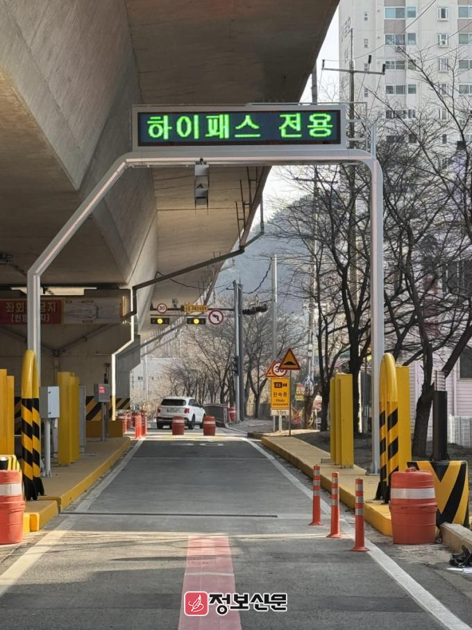 광주시는 이같한 문제를 해결하기 위해 사업비 13억5000만원을 투입해 120m 길이의 하이패스 진출로를 신설, 2개 차로를 확보했다. 현금 지불 차량은 1차로로, 하이패스 차량은 2차로로 운영된다.
