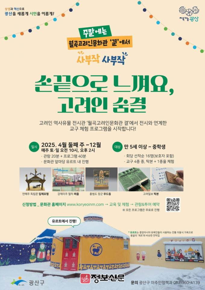 행사는 고려인문화관 앞 유르트(중앙아시아 유목민들의 전통 이동식 가옥, 몽골의 ‘게르’와 유사한 천막집) 내에서 진행되며, 보호자를 포함해 만 5세부터 중학생까지 참여 가능하며, 회당 선착순 16명까지 신청할 수 있다. 참가비는 무료다.