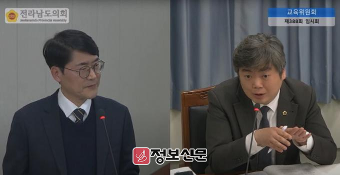 사진 설명 : 박원종 전라남도의원이 3월 18일 직속 기관 업무보고에서 시대 변화에 발맞춘 교직원 연수 개선과 정책적 지원의 필요성에 대해 질의하고 있다.