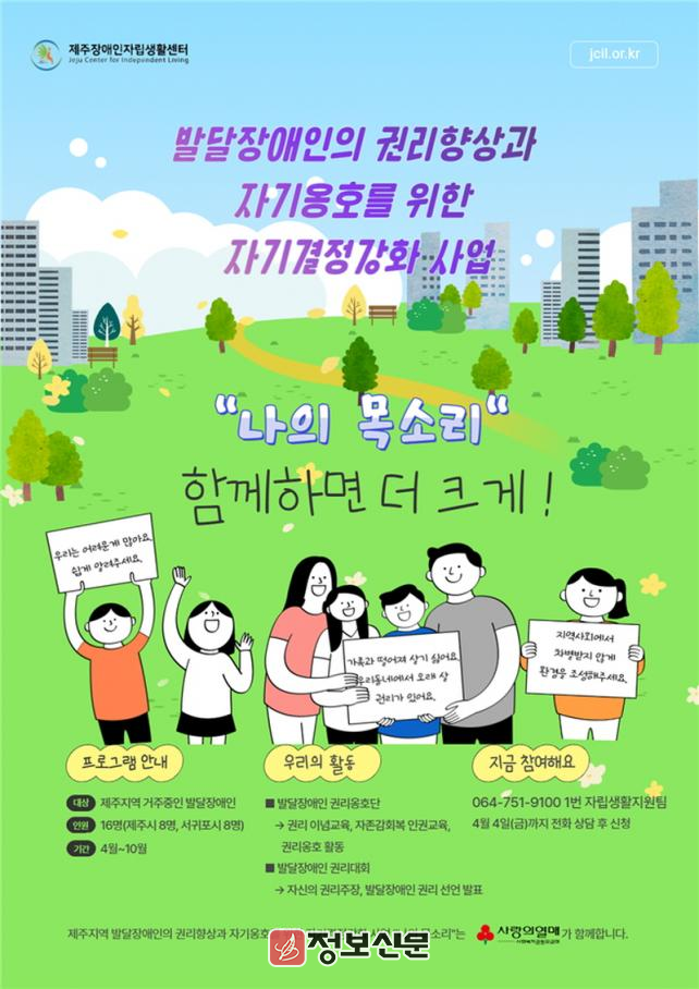 ![]() 제주장애인자립생활센터, 발달장애인 자기결정강화사업 나의 목소리 참여자 모집 |