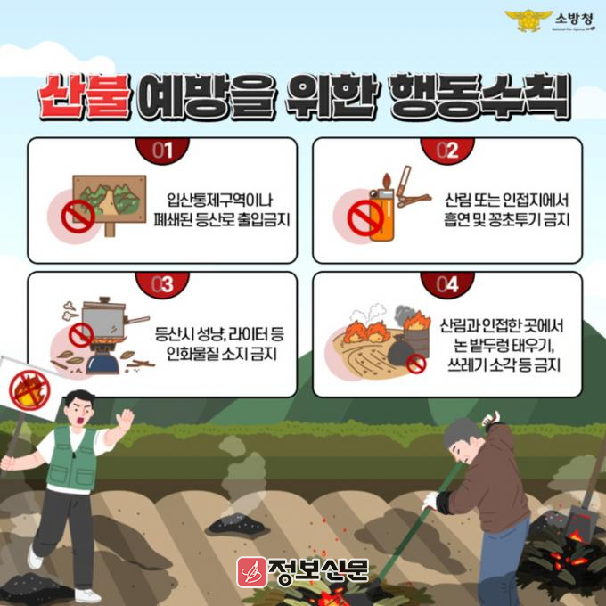 특히 논·밭두렁 태우기, 쓰레기 소각 등 부주의로 인한 화재 발생이 집중되는 시기인 만큼, 지역 주민들을 대상으로 산림 인접지역 불법 소각 금지와 인화물질 취급시 주의를 당부했다.