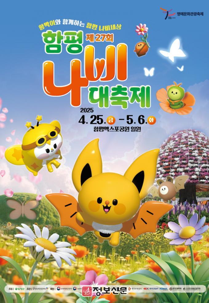 제27회 함평나비대축제는 4월 25일부터 5월 6일까지 함평엑스포공원에서 가족과 함께하는 나비 날리기, 나비‧황박이 팝업스토어, 나비판타지아 퍼레이드 쇼, 나비‧슬라임 스퀴시 만들기, 나비공주‧펫드레스 의상실 체험 등을 선보일 예정이다.
