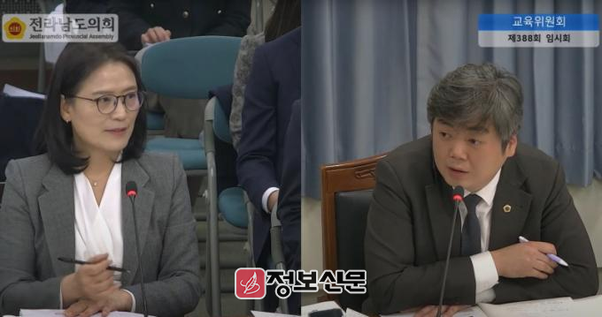 ![]() 박원종 전라남도의원이 3월 18일 직속 기관 업무보고에서 유아교육 현장 목소리 반영한 유아숲놀이체험원 운영에 대해 질의하고 있다.