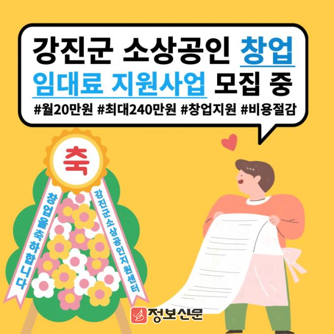 강진원 강진군수는 “창업 임대료 지원뿐만 아니라, 경영환경 개선사업, 소상공인 손실보상, 배달·택배비 지원사업, 스마트상점 기술보급사업 등 다양한 소상공인 지원 정책을 발굴하고 있다”며 “강진군 소상공인지원센터와 강진군청 축제마케팅추진단을 통해 적극적으로 신청해주길 바란다”고 말했다.