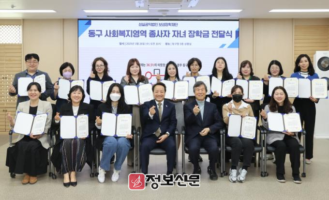 이날 전달식에서는 동구 사회복지영역 종사자 자녀 15명(1인당 1백만 원)에게 총 1천 5백만 원의 장학금이 전달됐다.