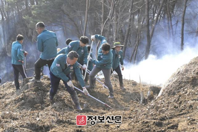 이날 현장에 최영일 군수를 비롯해 공무원 205명, 산불전문진화대(군청) 24명, 산불전문진화대(읍면) 12명, 이동감시원 14명, 소방서 23명, 경찰 13명, 기타 50명 등 350여명이 산불진화에 투입됐다.
